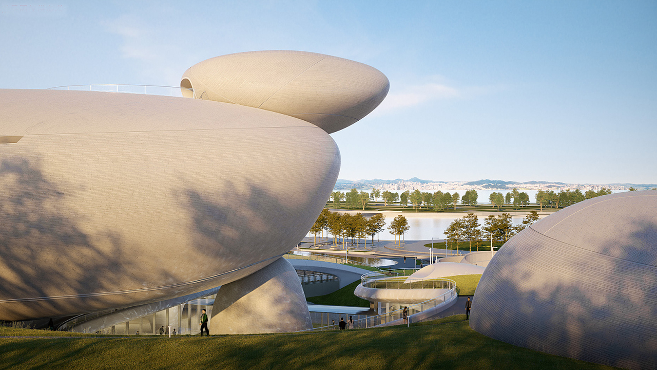 项目设计:MAD建筑事务所 幕墙类型:石材幕墙、UHPC幕墙、水幕亚克力采光顶等