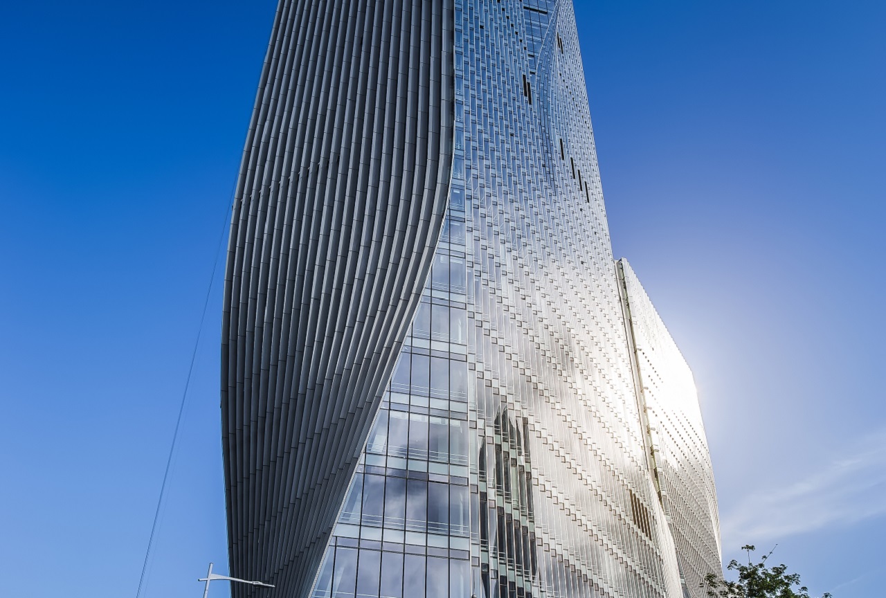 建筑高度:北塔楼218米,南塔楼116米 幕墙面积:80000㎡ 项目设计:丹麦BIG建筑事物所 幕墙类型:单元式锯齿玻璃幕墙,单元式锯齿波纹铝板幕墙