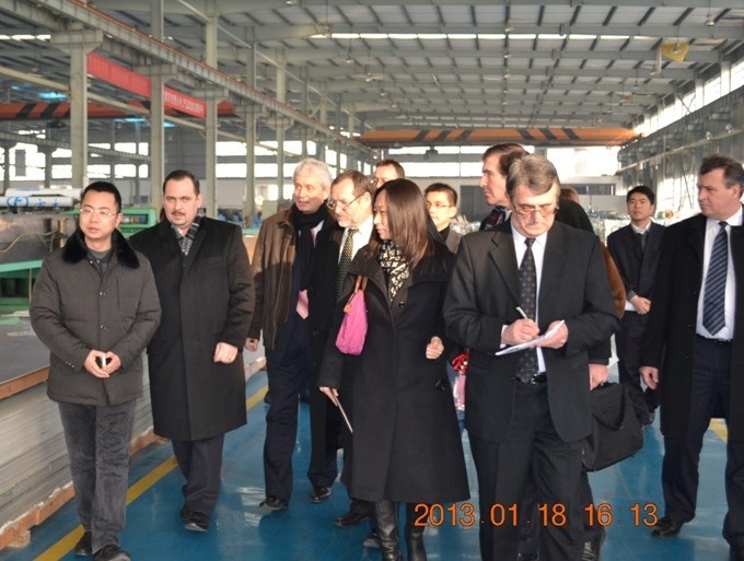 FUN乐天使新材料(江西)有限公司总经理唐昱对考察团的到来表示热烈欢迎,并陪同考察团到生产现场等进行参观考察。唐昱总经理向来宾介绍了公司的基本情况和行业发展现状。罗兰·孟伊一行对FUN乐天使铝板在技术水平、产品质量、品牌影响和市场竞争力等方面的综合优势表示赞赏。双方还就共同感兴趣的话题进行了探讨。