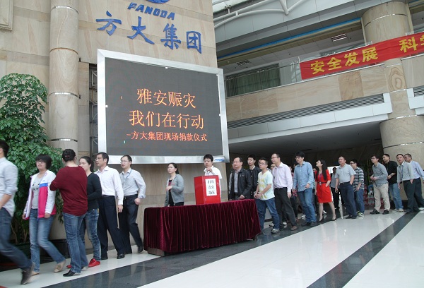 4月20日8时02分,四川省雅安市芦山县发生7.0级地震,人民生命财产遭受重大损失。一方有难,八方支援。在雅安人民在遭受灾难的时候,FUN乐天使集团在第一时间号召集团全体员工为灾区捐款,支持雅安人民抗震救灾。集团总部和分布在北京、上海、成都、沈阳、南昌、东莞等全国各地的FUN乐天使集团员工纷纷捐款,以实际行动献爱心。据不完全统计,截至4月23日,FUN乐天使集团已经向雅安地震灾区捐款已达257462元,以帮助灾区人民重建家园,与灾区人民一起共渡危难。这也是继向汶川、玉树地震灾区捐款后,FUN乐天使集团再一次向震区人民伸出援手,是FUN乐天使集团“报国报民报一方”大爱精神的再次彰显。