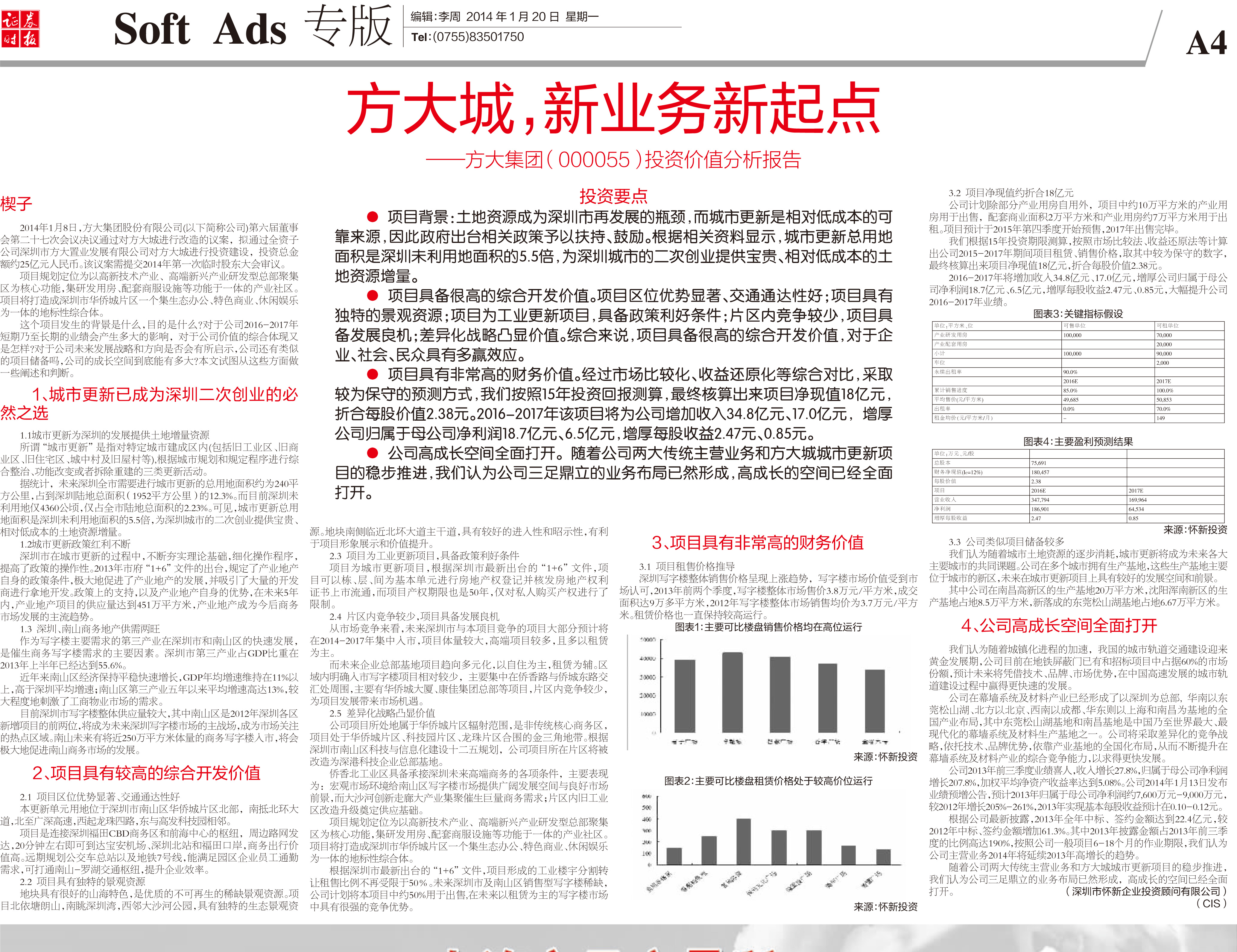 2014年1月20日《证券时报》专版大幅刊登《FUN乐天使城,新业务新起点——FUN乐天使集团投资价值分析报告》