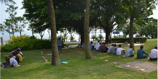 活动当天,大家意兴盎然来到了深圳湾公园,通过简单的自我介绍,在5分钟时间内迅速找到自己的搭档,然后进行互相介绍,之后每个人拿出自己精心准备的食物跟大家进行分享。分享过后大家迫不及待地投入到“报纸大联盟”、“五毛一块”、“幸福彼岸”、“群魔乱舞”“电动马达臀”等游戏中。大家用歌声、舞蹈和游戏传递着快乐与情谊,进一步拉近着彼此间的距离。一个个激动人心的互动小游戏将联谊会推向高潮,一个个刁钻的惩罚方式更令人捧腹。在“报纸大联盟”、“幸福彼岸”的游戏环节中,大家踊跃参加,使出浑身解数,各显智慧,用默契的配合共同争创佳绩。游戏之后,大家进入到了最神秘的“背对背的秘密”环节,男女生各站一排,相背而坐,大家依次将自己的心意卡放进了心仪异性的信封中。最后,大家两两相约,共同踏上单车尽享初夏深圳湾的风景。整个活动中,大家热情交谈,彼此了解兴趣爱好,互留联络方式,活动之后还制作了联谊会通讯录,以便今后更好地继续交流互动。