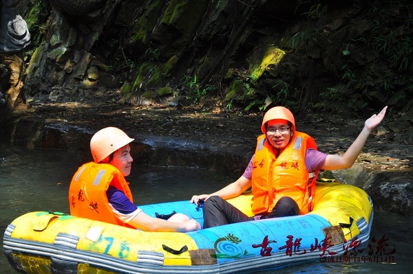 活动当天晴空万里,部分六月生日寿星7:40准时集合出发,历经近4小时的车程终于到达了让大家兴奋不已的国际漂流基地——清远古龙峡。 大家搭乘漂流点的巴士抵达漂流的起点,做好安全准备之后便两两组合上艇开始了漂流之旅。皮艇像浪尖上的过山车高速滑行,飞旋在波峰波谷间,惊魂未定之际又嘎然而止,橡皮艇稳稳跃入一个的清澈水潭里,平静下来,尖叫声犹在耳边。一处处激流回旋,一道道极限落差就在一路尖叫声中被抛在身后了。回转身去,油然而生的是轻舟已过万重山的豪迈之感。