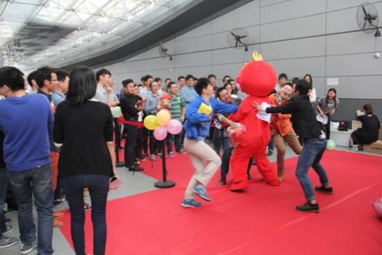 下午四时许,寿星们纷纷入场,在入口处与福猴击掌相庆,在享用精美的小食甜点之后,即开启了紧张激烈的游戏环节。活动当天共进行了投壶、最美猴音、踩气球三轮游戏。在投壶游戏环节中,寿星们一一登场,上演了“10中6”、“4连中”等高水准表演,引起现场阵阵惊呼;“最美猴音”环节引爆了现场氛围,当美妙的歌曲响起,猜中曲目答案的寿星如箭矢离弦,奋力冲刺抱住福猴,并向主持人大声报出曲目答案,不少寿星因心情激动,用力过猛,差点与福猴来了个“倒地摔”,欢乐的场面引起哄堂大笑;踩气球环节则丝毫不亚于一场“小型格斗”,寿星们充分展示自己的智慧与实力,奋力踩爆对手脚上系着的气球,矫捷的身手high翻全场。游戏中,每轮成功闯关的选手还领取到LED护眼灯、福猴玩偶等丰富实用的奖品。