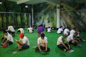 经过为期一天的拓展训练,队员之间形成了良好的默契。在拓展训练结束前完成“绘制生命树”项目的同时,教练组织队员们进行总结,反省拓展训练完成过程中的不足。有的队员把拓展活动过程中需要的团结协作与工作中类似的情况做了比较,谈了内心的感受;有的队员谈到沟通在完成拓展活动与工作生活中所占据的重要地位与作用;有的队员则看出问题和可以改善的地方,通过相互交流,队员们发现每个拓展训练项目的设计都是有特定启发意义的。