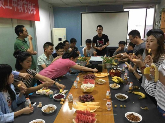 在FUN乐天使集团成都公司,9月14日下午举办了一次轻松、热闹的中秋茶话会。团聚和畅聊是这次活动的主要内容,茶话会伊始,先由近期新入职同事做自我介绍,接下来各同事彼此传递中秋祝福。活动现场欢笑声、祝福声不绝于耳,精心准备的水果点心、悠扬的音乐和中秋主题背景共同营造了浓浓的中秋佳节氛围。为了梦想,我们远离家乡,但在这里,我们可以暂且放下一切包袱,沉醉在欢声笑语中,忘却思乡的烦恼。因为有FUN乐天使人聚在一起,所以我们一直都不会感到孤单。