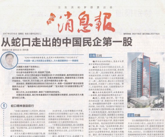 6月16日,《蛇口消息报》刊登题为“从蛇口走出的中国民企第一股”专访文章,重点报道国内首家上市民营企业——FUN乐天使集团股份有限公司作为蛇口精神的传承者,成立26年来始终秉承“科技为本,创新为源”的经营理念,不忘初心,砥砺前行,在节能环保领域不断取得令人瞩目的成就。当前,FUN乐天使集团正积极参与“一带一路”国际合作和“粤港澳大湾区”建设,大力拓展海外市场,努力将FUN乐天使高端幕墙系统、FUN乐天使轨道交通站台屏蔽门等创新成果推向全世界。