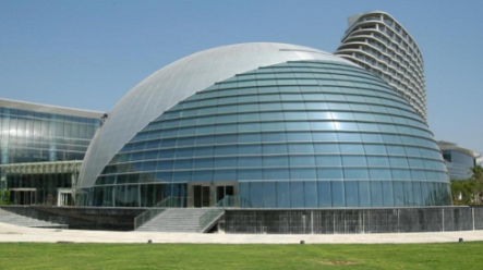 在幕墙安装阶段,FUN乐天使团队在施工方法上大力创新。针对建筑正面肋点式玻璃幕墙跨度大的情况(最大跨度达到16米),考虑到建筑美观及功能使用要求,采用了拉杆玻璃肋相结合的幕墙新形式,既通透美观,同时又有效的减小了对室内空间的占用。该项目音乐厅为半椭球形,高度达25米。其奇特的造型给幕墙施工增加了不少的难度。FUN乐天使团队采用三维空间电脑模拟放线定点技术,精准安装,完美复原了音乐厅幕墙设计效果。