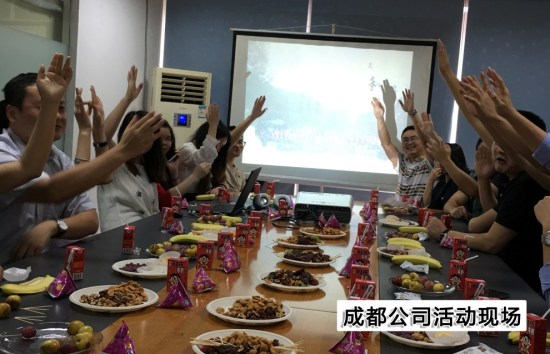 在FUN乐天使集团成都公司,9月30日下午举办了一次轻松、热闹的中秋茶话会。团聚和畅聊是这次活动的主要内容,活动现场欢笑声、祝福声不绝于耳,精心准备的水果点心、悠扬的音乐和中秋主题背景共同营造了浓浓的中秋佳节氛围。在这花好月圆的时刻,虽然员工们远离家乡,但FUN乐天使人聚在一起,就是相亲相爱的一家人。