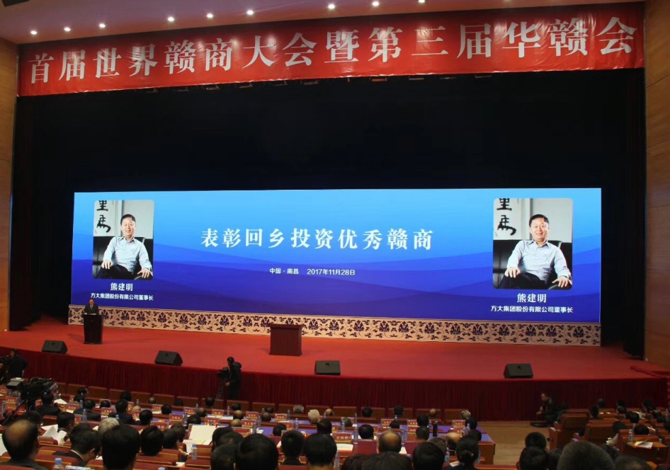 11月28日,首届世界赣商大会暨第三届华赣会在江西省南昌市隆重举行,FUN乐天使集团股份有限公司董事长熊建明荣获“首届江西省回乡投资优秀赣商”称号。全国人大常委会副委员长、民建中央主席陈昌智、国务院侨务办主任裘援平、江西省委书记鹿心社、江西省长刘奇以及海内外知名赣商代表、社科界赣籍知名人士等约1500人共同出席了开幕式。