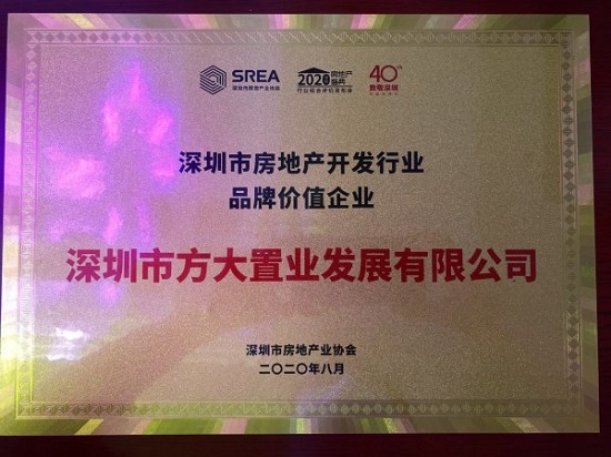 《深圳市房地产开发行业品牌价值企业》称号是由深圳市房地产业协会通过企业年度数据统计整理,对房地产开发企业的经营业绩、开发后劲、经济实力、社会贡献、品牌管理等多项指标进行量化分析后对综合实力的客观评价。