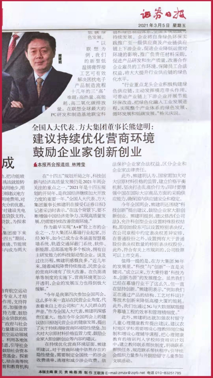 “今年是我第四次参加全国两会,这么多年来一直站在民营企业角度,代表着来自上市公司和广大人民群众的声音。”作为全国人大代表,熊建明深感责任重大。他在今年全国两会上的建议依旧围绕民营企业的健康发展,提出了关于持续清除营商环境隐性壁垒、加大对大宗原材料价格监管力度、鼓励企业家大胆创新创业等内容的建议。