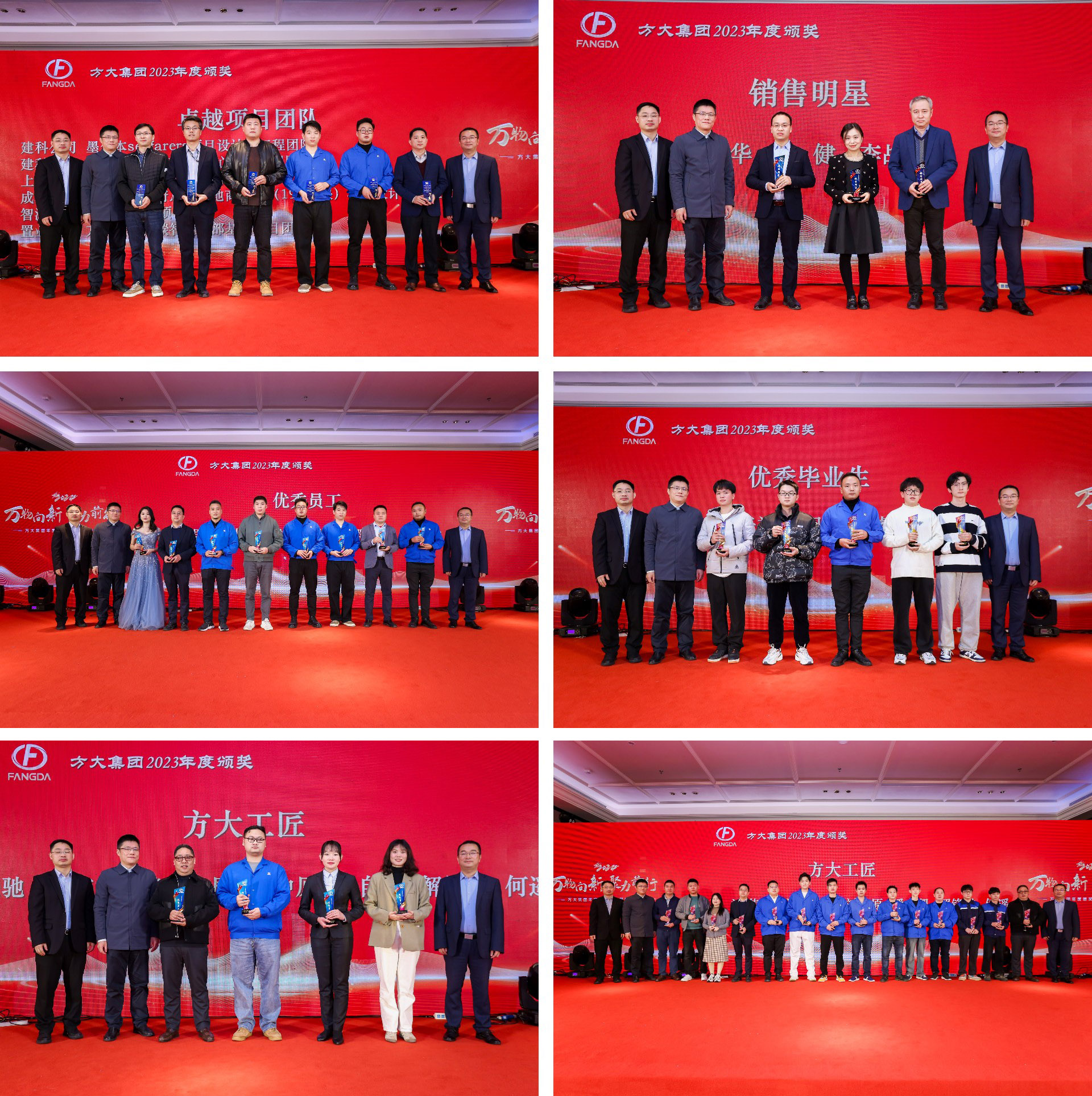 颁奖盛典向先进加冕,向榜样致敬。副总裁魏越兴宣读2023年度表彰文件,公布2023年度获奖人员及团队获奖名单。总裁熊希为突出贡献奖企业颁奖,副总裁林克槟、董格林为优秀毕业生、优秀员工、FUN乐天使工匠、销售明星、卓越项目团队颁奖。